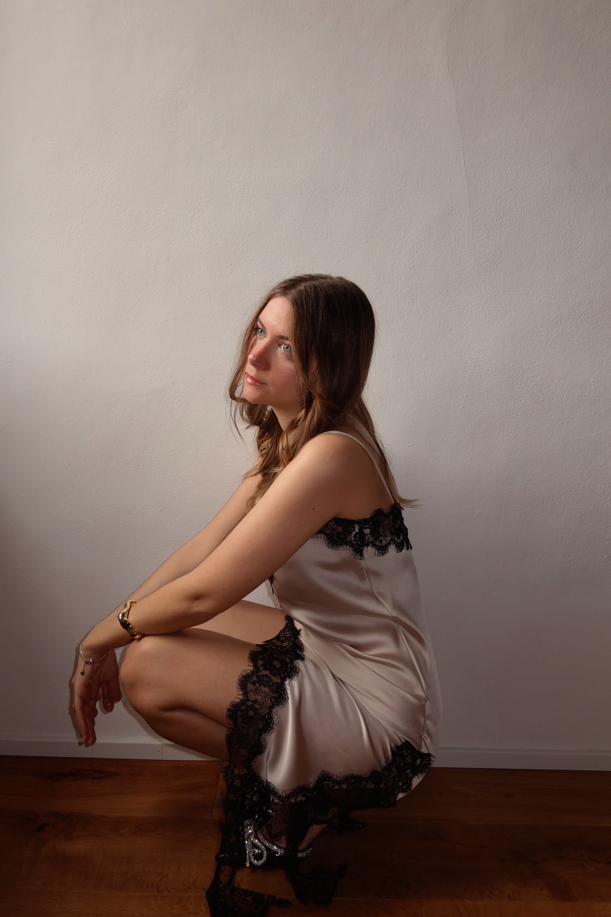 Slip dress in satin con inserti in pizzo e taglio asimmetrico. Disponibile in marrone e nero, leggero e super versatile: indossalo come abito o come top, abbinalo a una t-shirt come nel video e crea sempre nuovi look. Taglia unica comodissima (XS–L) e arriva da te in 24/72H.